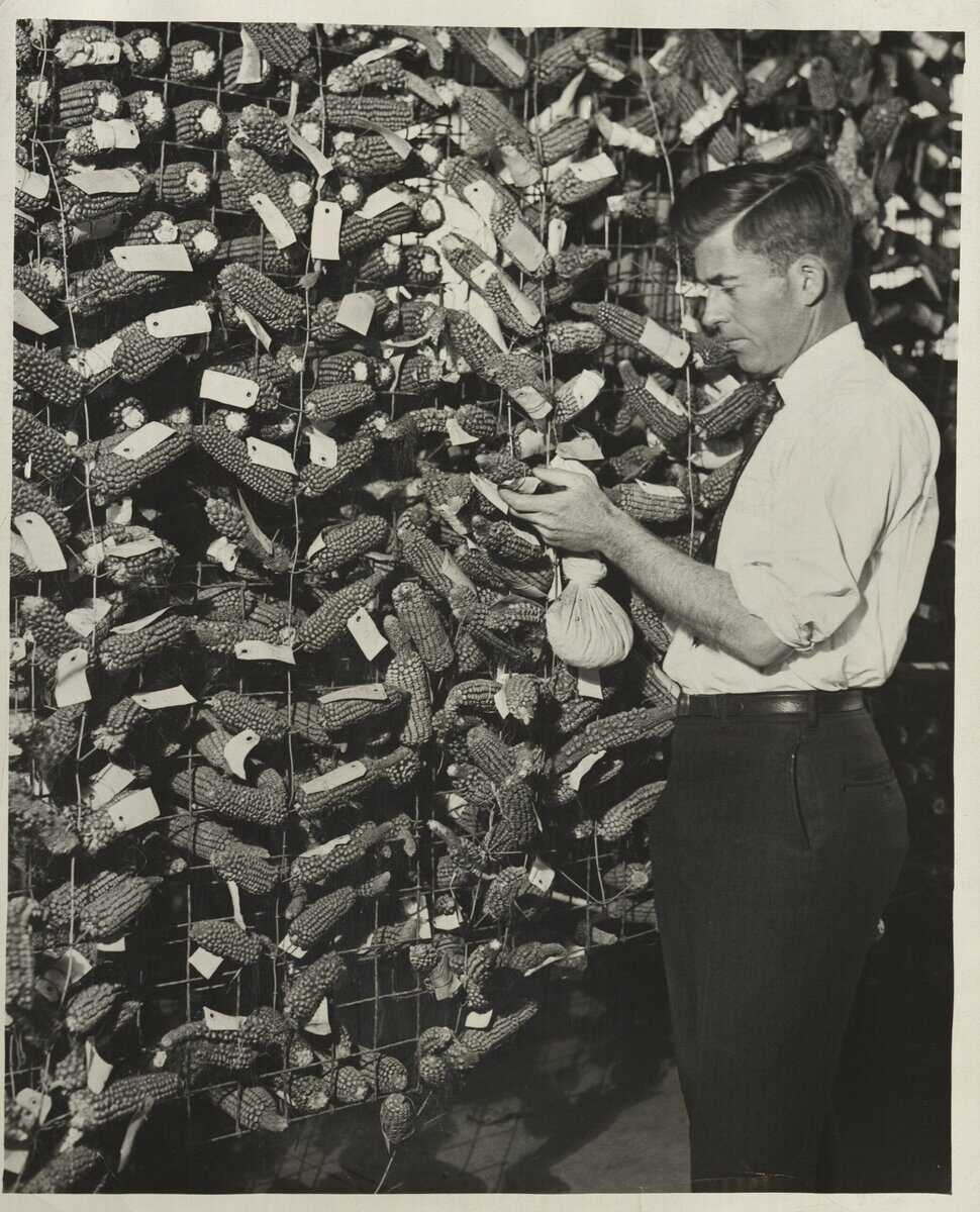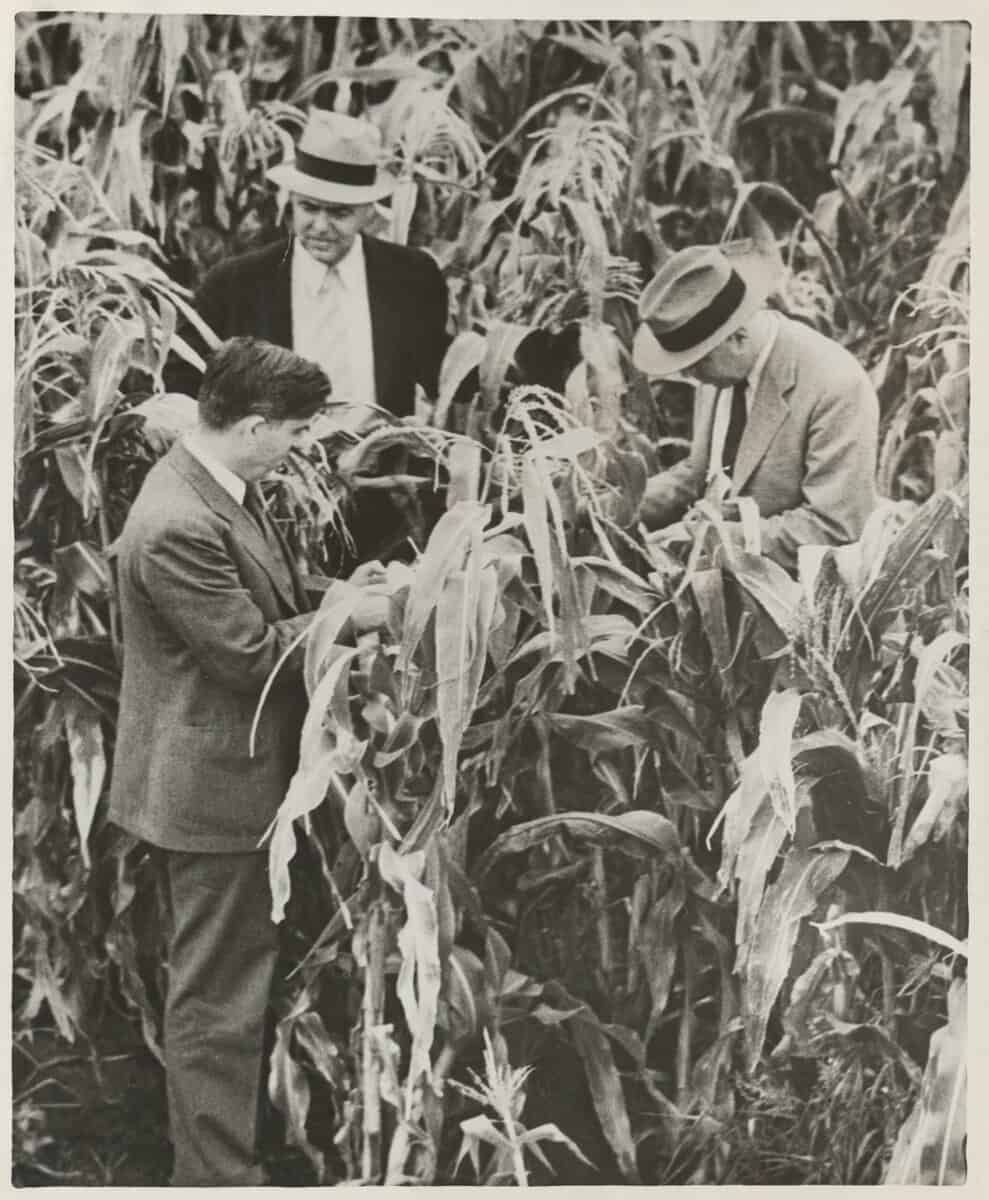 Henry A. Wallace, ‘Spike’ Evans, and Jim Russell in cornfield (1933)Henry A. Wallace with Ears of Corn at Clyde Herring’s Garage, Des Moines, Iowa (1920s)