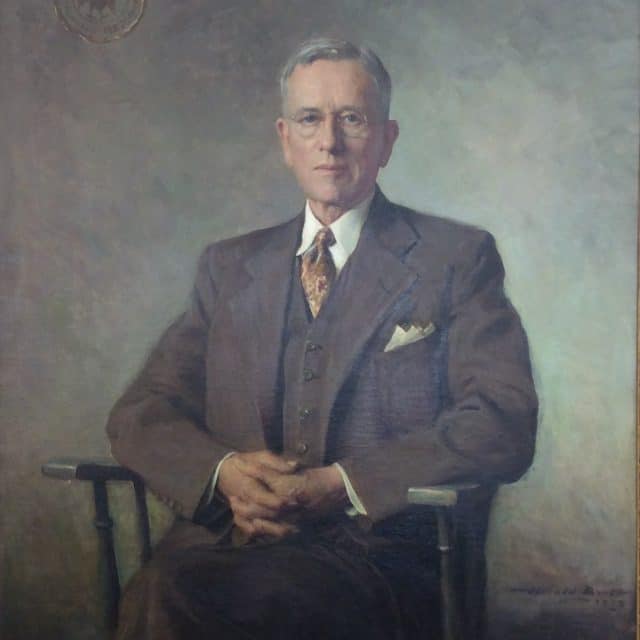 The portrait hanging in our library was painted by Harold Brett, an American illustrator and painter known for his New England scenes and for his portraits. His illustrations have been featured in Harper’s Weekly, Collier’s Weekly, and the Saturday Evening Post. He painted Professor Higbee’s portrait in 1952.