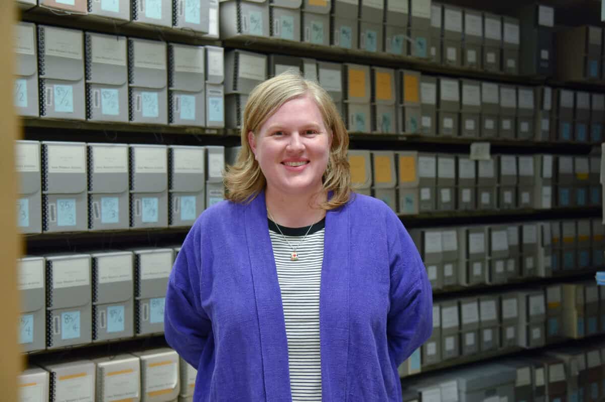 When a new collection or material comes to the Iowa Women’s Archives (IWA) at the University of Iowa Libraries, Meredith Kite is the first person to handle it. Located on the third floor of the Main Library, IWA collects and makes available primary sources about the history of Iowa women from all walks of life. As the collections archivist for IWA, Meredith accessions, processes, and manages these archival collections. She also oversees the work of graduate student workers.