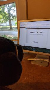 Wulfie’s a big fan of treats, like biscuits and pig’s ears. But he saves messy things, like wet food, for eating outside of the Music Library. Please feel free to bring snacks, like granola bars or a cup of coffee (with a lid), into the Music Library, but please eat meals, like Panchero’s burritos or pizza in the Student Lounge one floor below. There are trash and recycling bins located at the library entrance and near the printers where you can dispose of empty containers and other food-related debris. And you can always bring Wulfie a treat, he’s particularly fond of chicken bits.