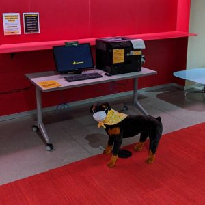 Wulfie likes to share his library adventures with friends online, and you can find his feed @wulfieparsons on Instagram. If you take a selfie with Wulfie, tag him! And he always appreciates a scritch between the ears, it can be good luck before a test or a jury.