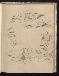 Under its bright lavender marbled binding, this handwritten American cookbook (American cookbook, ca. 1850, US32 in the Szathmary Culinary Manuscripts Collection at the University of Iowa) holds a world of community and relationships, even though the two writers of the book are unknown to us. Given the context of its recipes and handwriting, we believe this book to have been written by two women in America, in the years following 1851. Though the first page contains penned illustrations fit for a cover page, this book has no self-prescribed title or mention of the names of the women who wrote it. Yet, we can learn about these women through their interactions with the book itself.