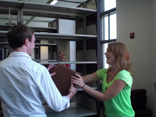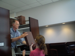 - Library staff (Kai, Brandon, Christine, Jessica, and myself) have also shifted journal titles to make room to the incomming Physics titles. This involved a moving assembly line.